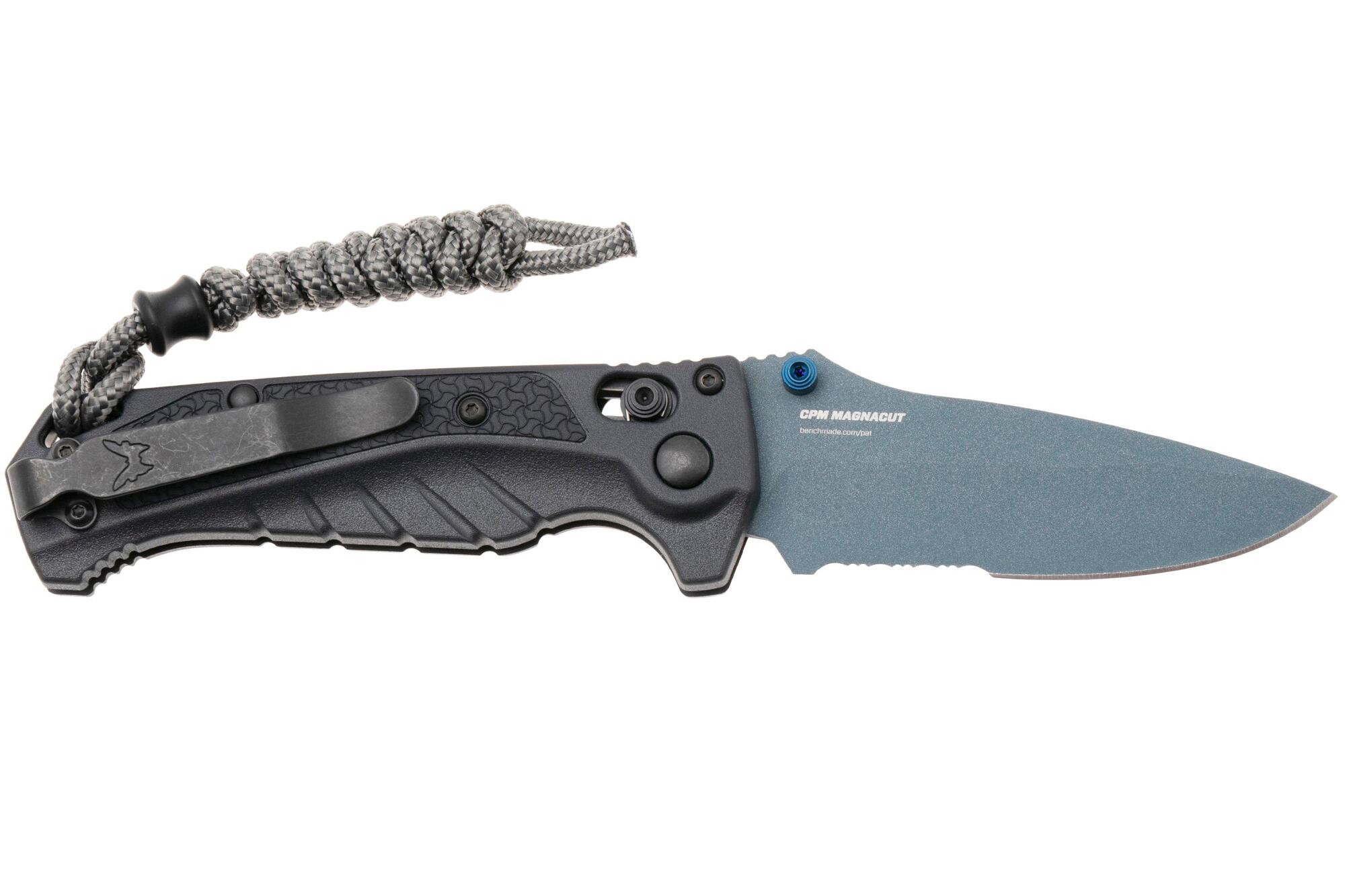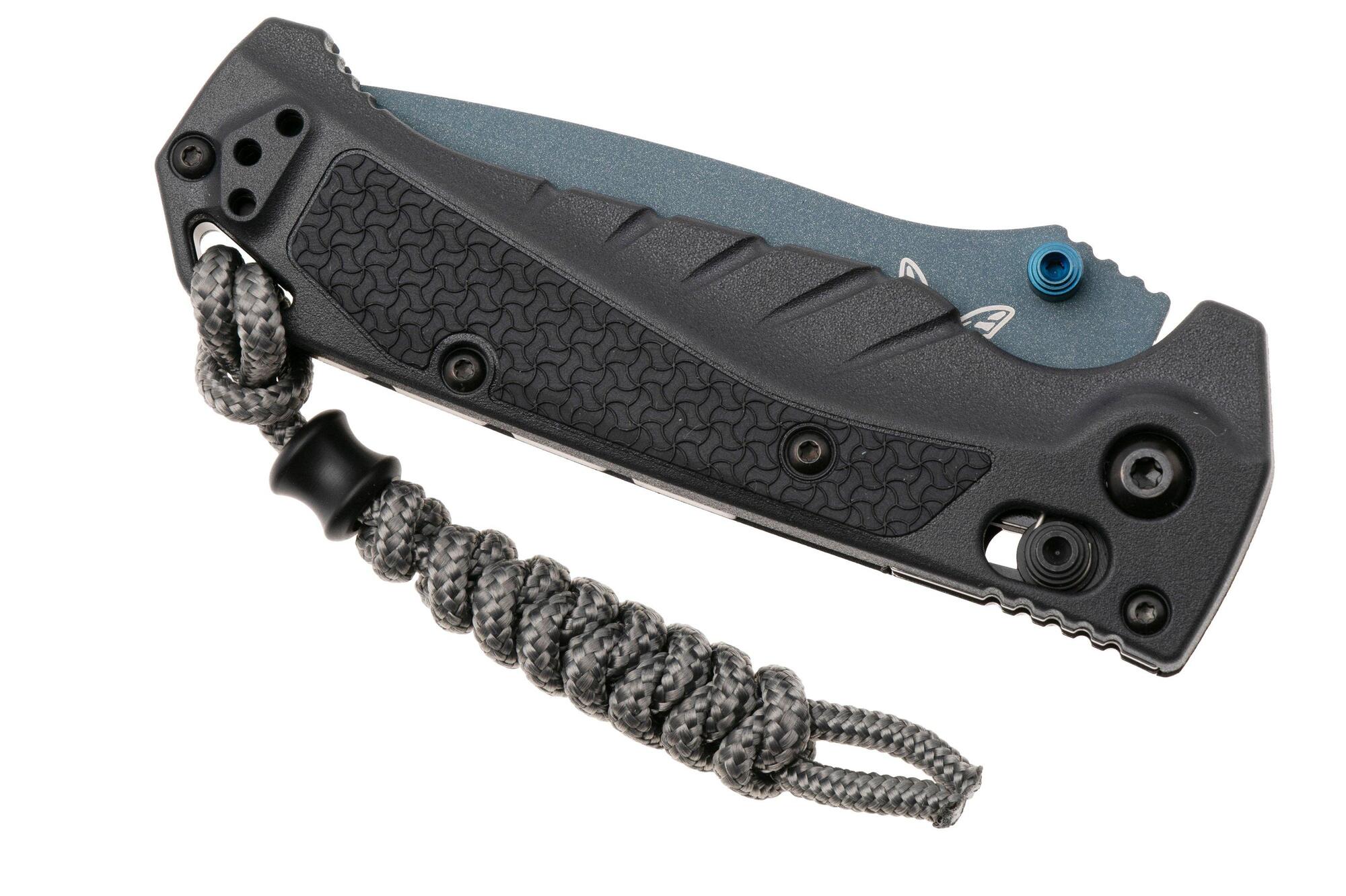 La versione seghettata della nuova variante del Mini Adira™, il 18065SBT-01 Mini Adira™, si distingue davvero quando c'è bisogno di tagliare corde o linee bagnate, condizioni in cui i "denti" di una lama seghettata risultano particolarmente utili. Con un manico in Grivory® grigio tempesta abbinato a un tocco di colore nei suoi componenti in PVD blu zaffiro, il 18065SBT-01 Mini Adira™ presenta una lama seghettata drop-point da 3,0" realizzata in acciaio inossidabile CPM-MagnaCut, con una elegante finitura della lama in titanio blu Cerakote®. Il laccetto in paracord grigio carbone con perla in nylon nero offre una superficie per un'estrazione più rapida dalla tasca.