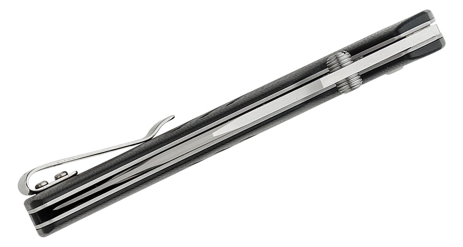 La lama realizzata in acciaio premium CPM S35VN si apre con un perno sulla lama e viene mantenuta in posizione aperta dal sistema di blocco scorrevole brevettato Atlas. Il manico è realizzato in materiale G10. Il coltello è dotato di una clip per il trasporto in tasca.