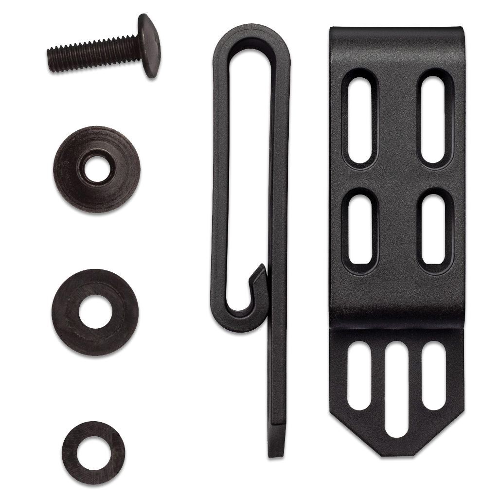 Il clip viene fornito con tutto l'hardware di base (viti e rondelle di gomma). Inoltre, può essere fissato su entrambi i lati del vostro fodero, permettendovi di adattarlo per un trasporto nascosto all'interno dei pantaloni. Il C-Clip si adatta anche a foderi di altri produttori e coltelli personalizzati.