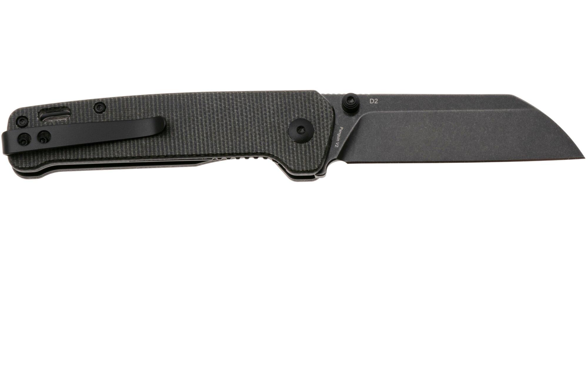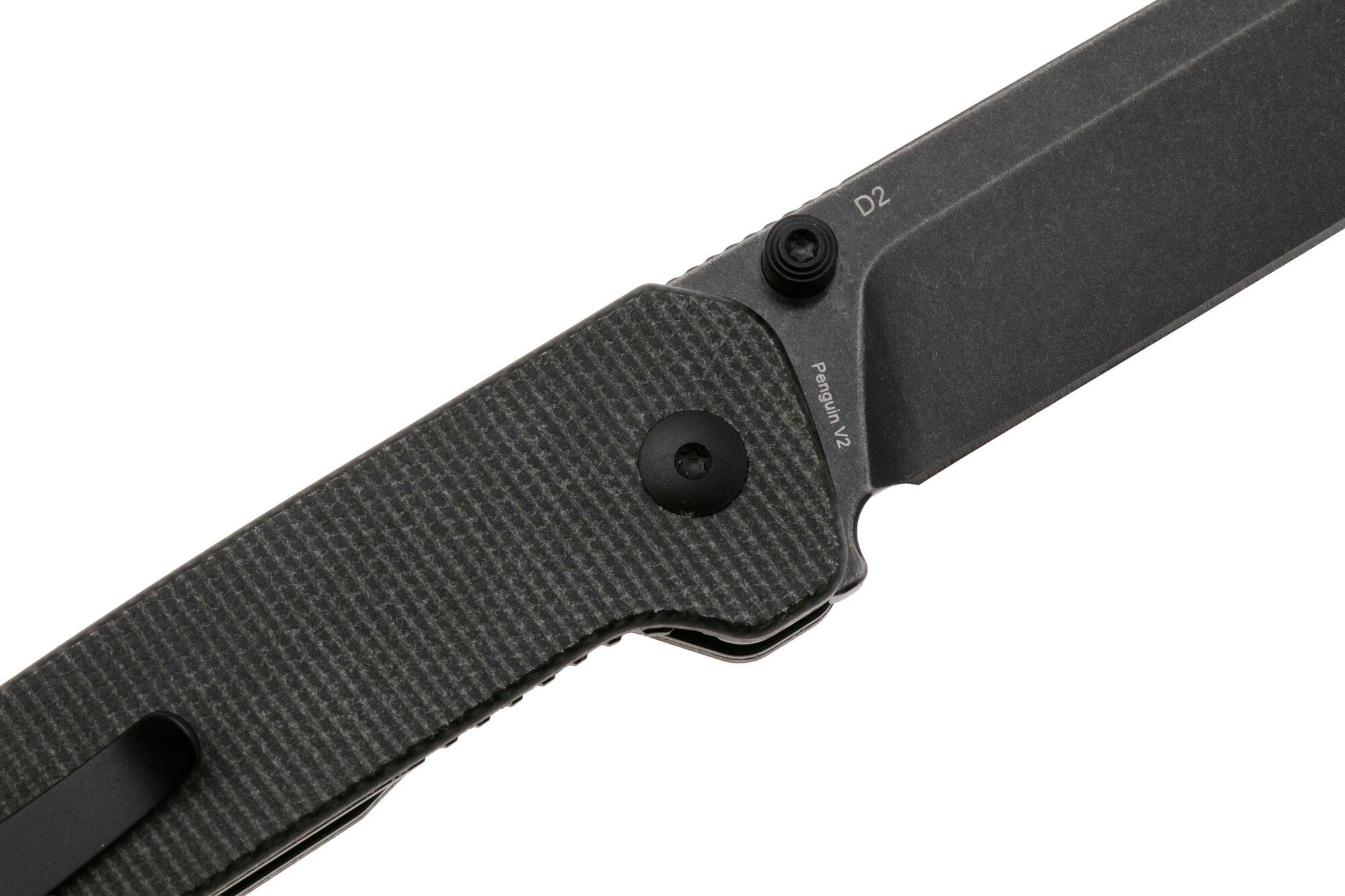 QPS Penguin V2 D2, black stonewash, Manico: Micarta marrone scuro QS130V2-A2