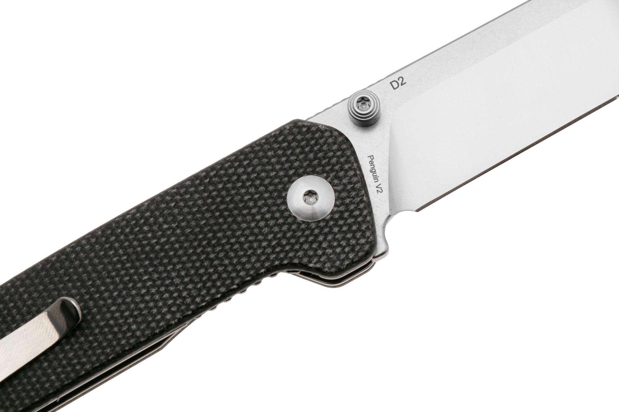 Il QSP Penguin V2 è un coltello pieghevole che offre una lama pratica per tagliare e affettare, garantendo un ottimo rapporto qualità-prezzo. La lama in D2 presenta un design sheepsfoot, ideale per compiti di taglio e affettatura grazie al suo ampio bordo dritto. La lama si apre tramite un thumb stud ed è eccezionalmente fluida da utilizzare grazie alla nuova costruzione del perno. La versione V2 è dotata di cuscinetti a sfera in ceramica nel perno, ma consente di sostituirli con rondelle se lo si desidera. È disponibile un set di rondelle in bronzo e Teflon, se necessario. Le guancette sono realizzate in Micarta, leggermente testurizzate per offrire una presa sicura ma comunque confortevole. Questo coltello tascabile è dotato di un deep carry clip reversibile e si adatta perfettamente a una tasca.