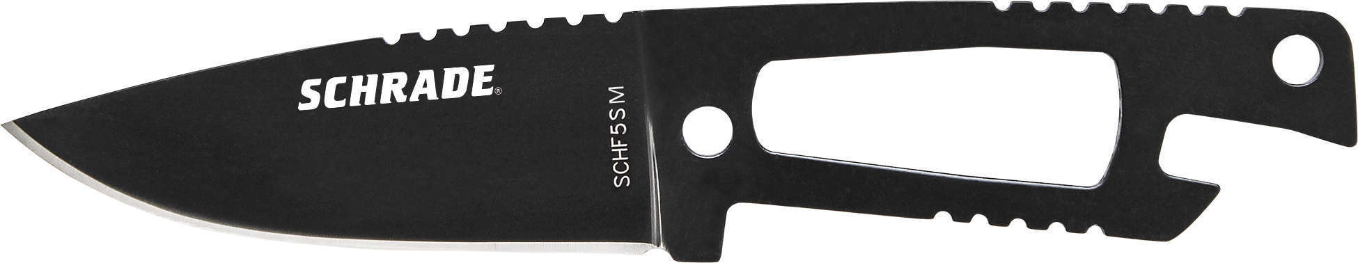 Coltello compatto e piccolo da collo, ideale anche per la sopravvivenza, Schrade Extreme Survival. Realizzato in un unico pezzo di acciaio al carbonio 7Cr17MoV con finitura nera, manico scheletrato con apribottiglie integrato. Viene fornito con un fodero in plastica con cordino da collo.