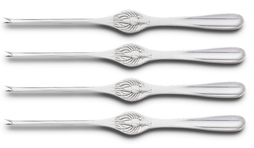 Set di 4 forchette per aragoste Wüsthof per estrarre facilmente la carne da aragoste e granchi. Realizzate in un unico pezzo di acciaio inossidabile. Lunghezza 21 cm.