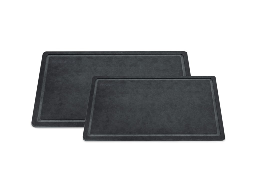 Set di due taglieri di Wusthof in materiale naturale fibroso con utilizzo universale/doppio lato che mantiene i coltelli affilati. Con scanalatura per il drenaggio di succhi/acqua, extra leggeri e adatti alla lavastoviglie.