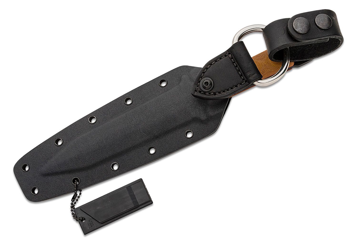 Viene fornito con un fodero in kydex nero con sospensione in pelle per un facile trasporto.